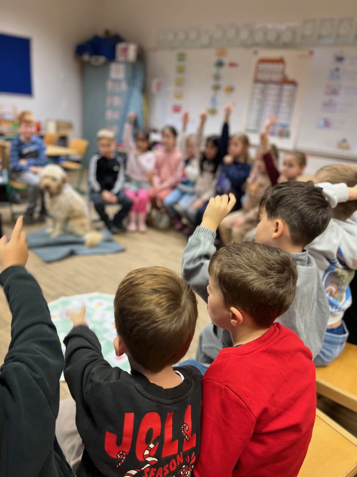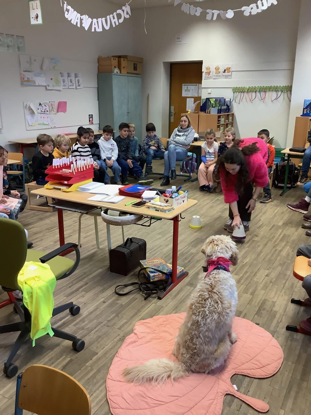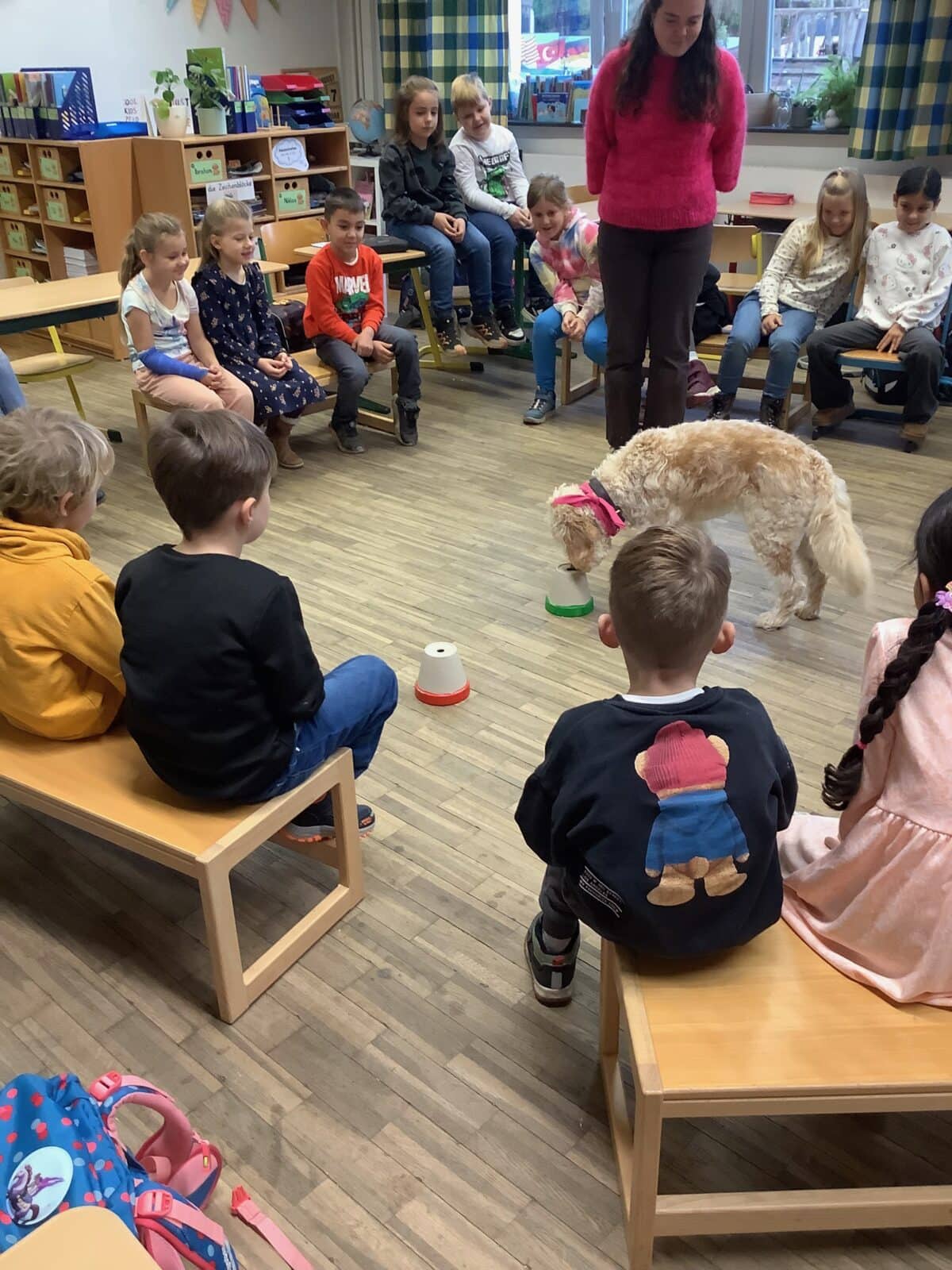 Wir sind wie ein fröhliches Rudel und lernen gemeinsam jeden Tag viele spannende und neue Dinge. An manchen Tagen ist unser Klassenhund Pippa bei uns. Mit Pippa macht das Lernen doch gleich doppelt so viel Spaß!