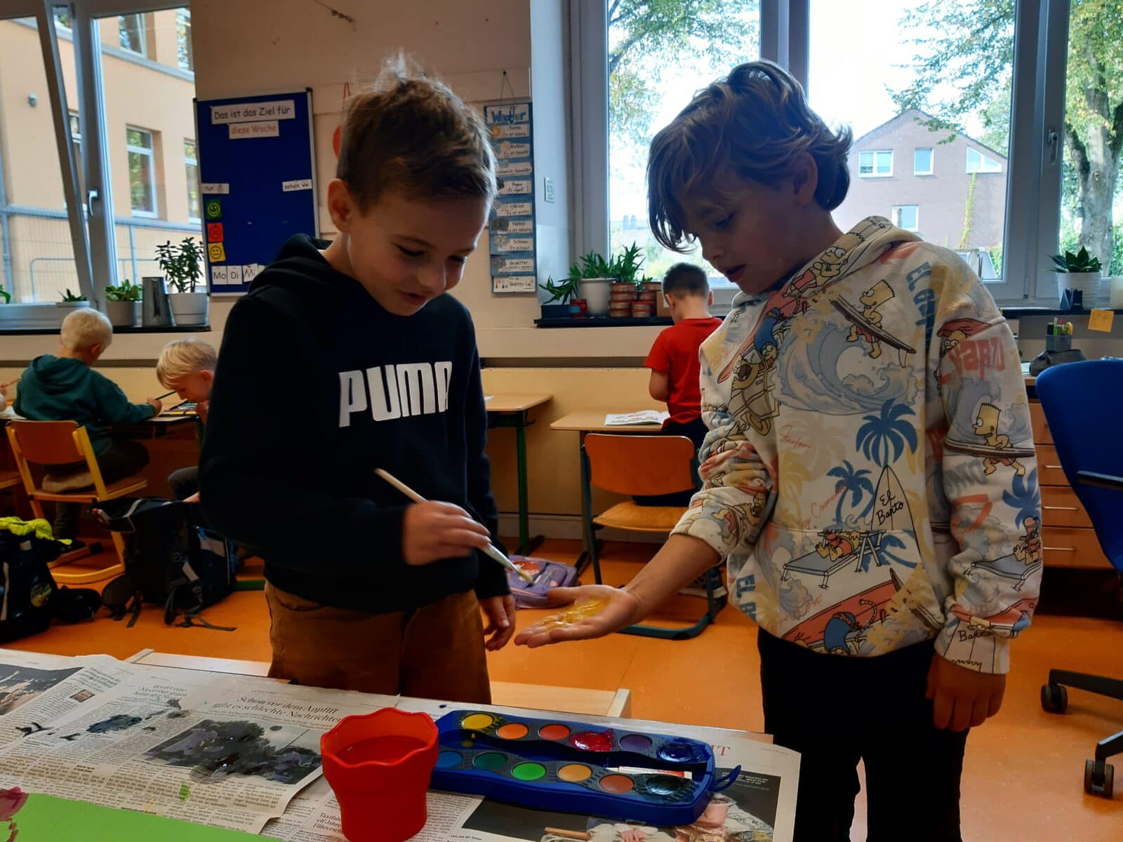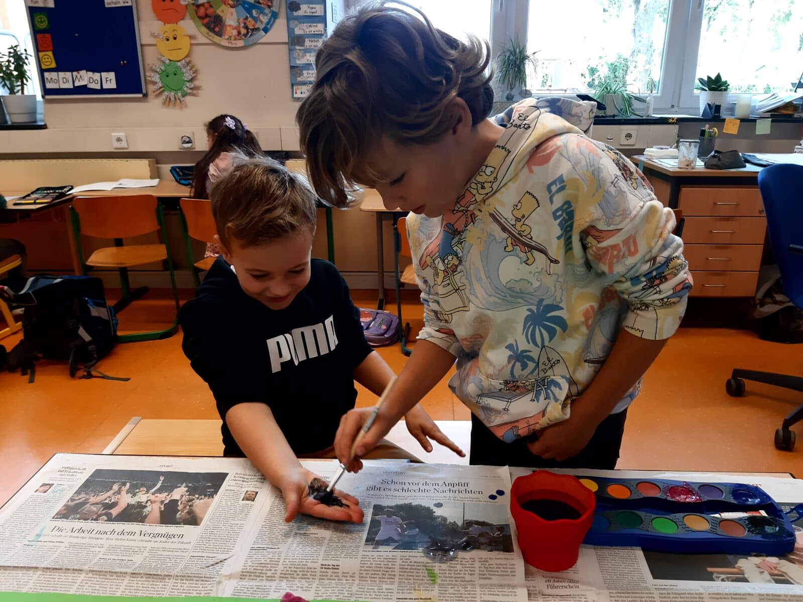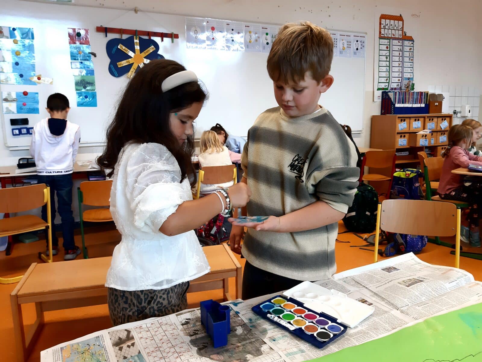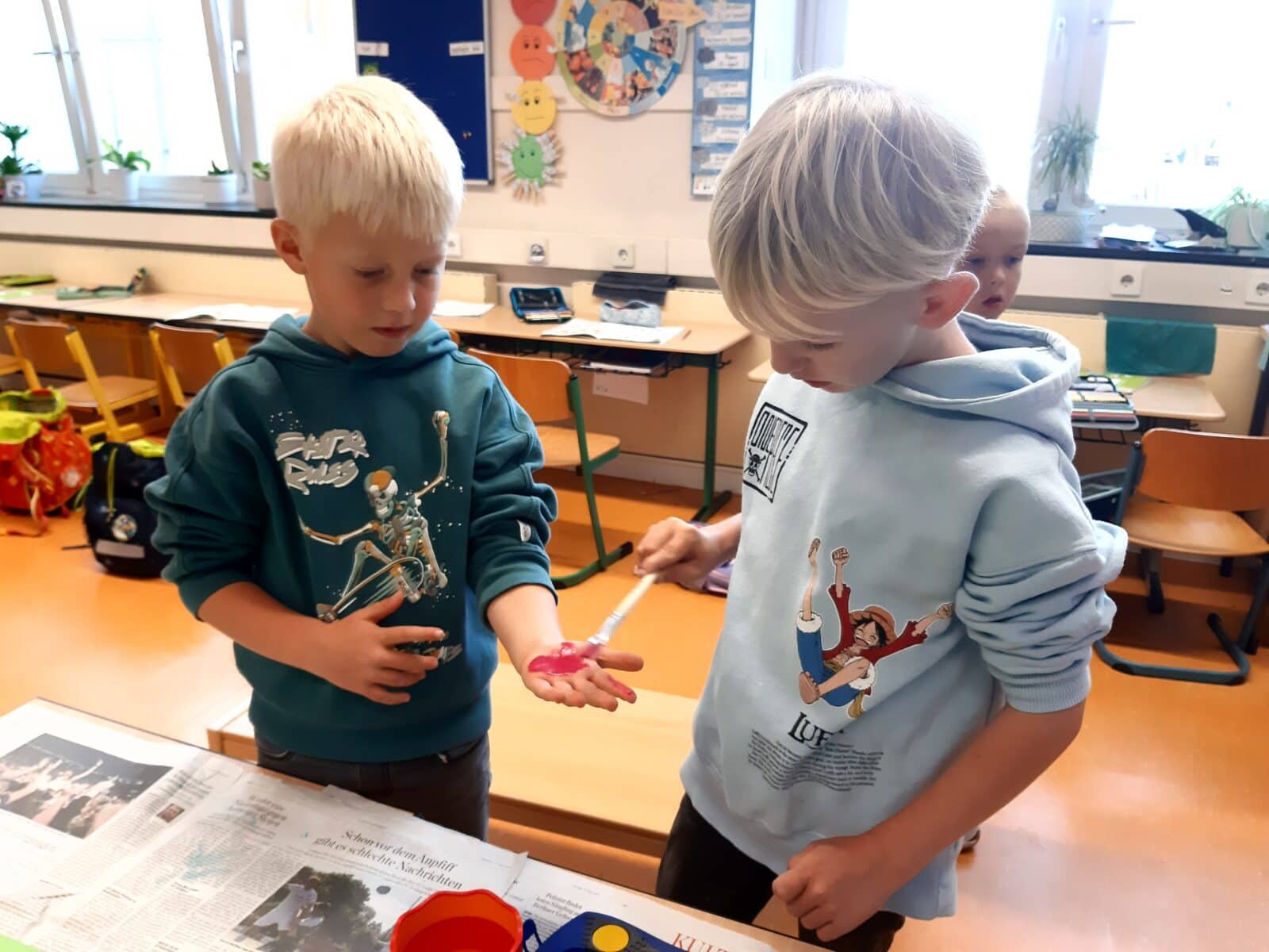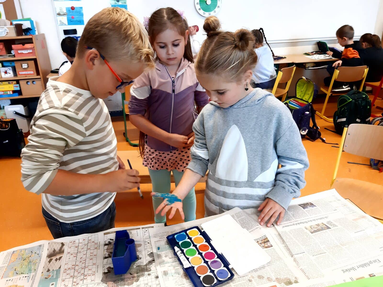 Hier wird schnell klar, dass Teilen, Helfen, Trösten und Zusammenhalten das kleine WIR und damit unsere Klassengemeinschaft stärken. Mit jeder helfenden Aktion wächst unser WIR. Anfangs sah unser kleines WIR auf dem Plakat noch aus wie eine grüne Kartoffel. Aber mittlerweile hat unser WIR schon Arme, Ohren, Augen und sogar eine Nase. Bald ist es richtig groß und stark.