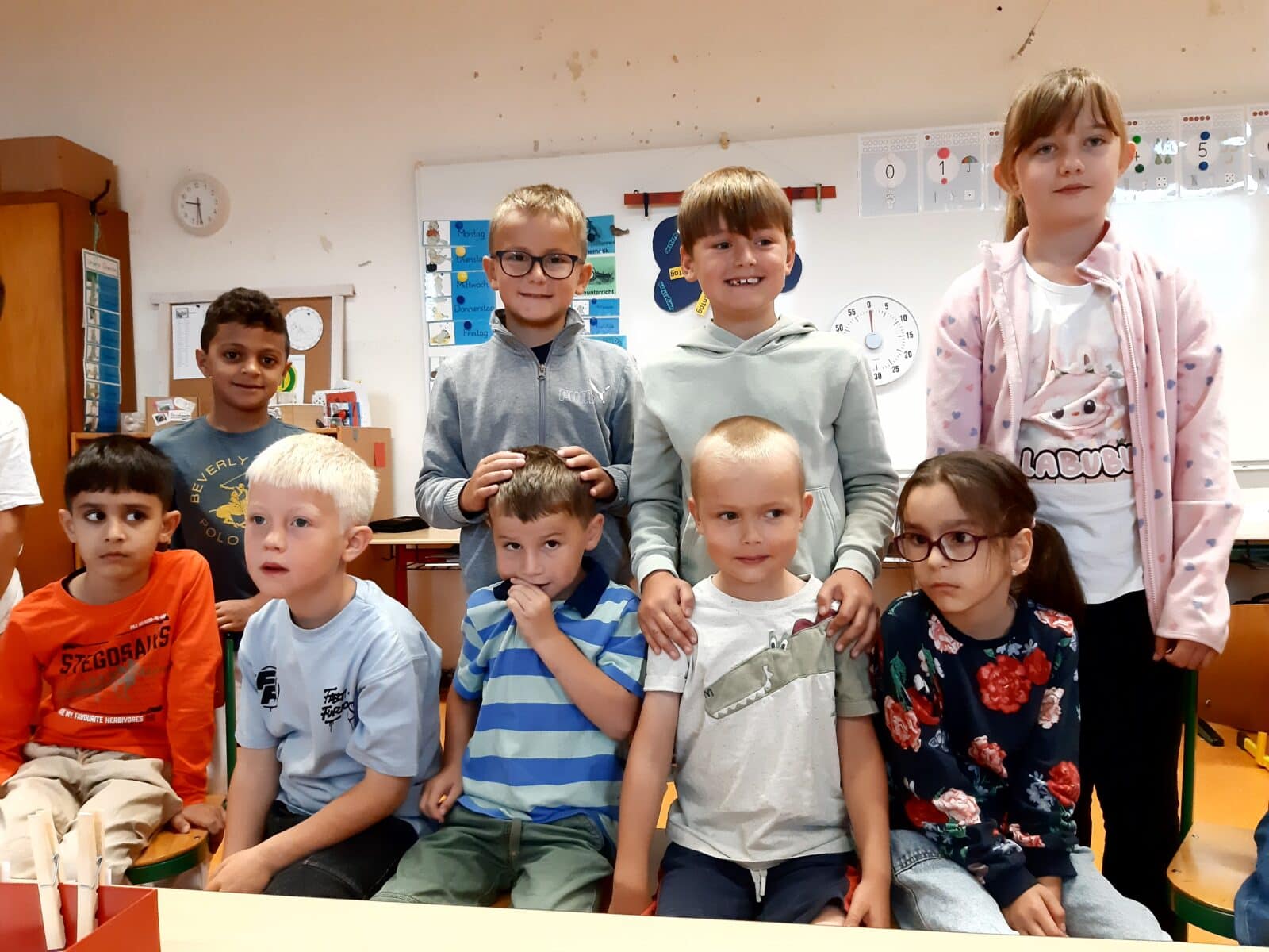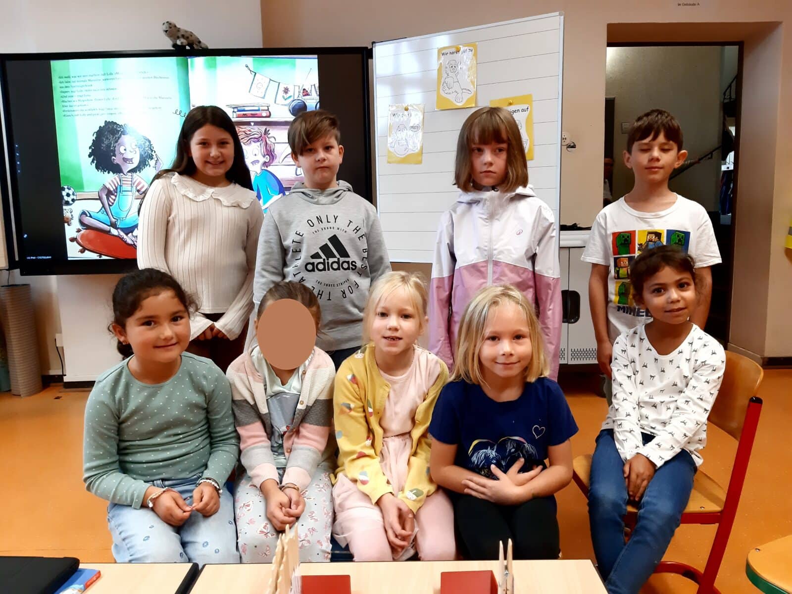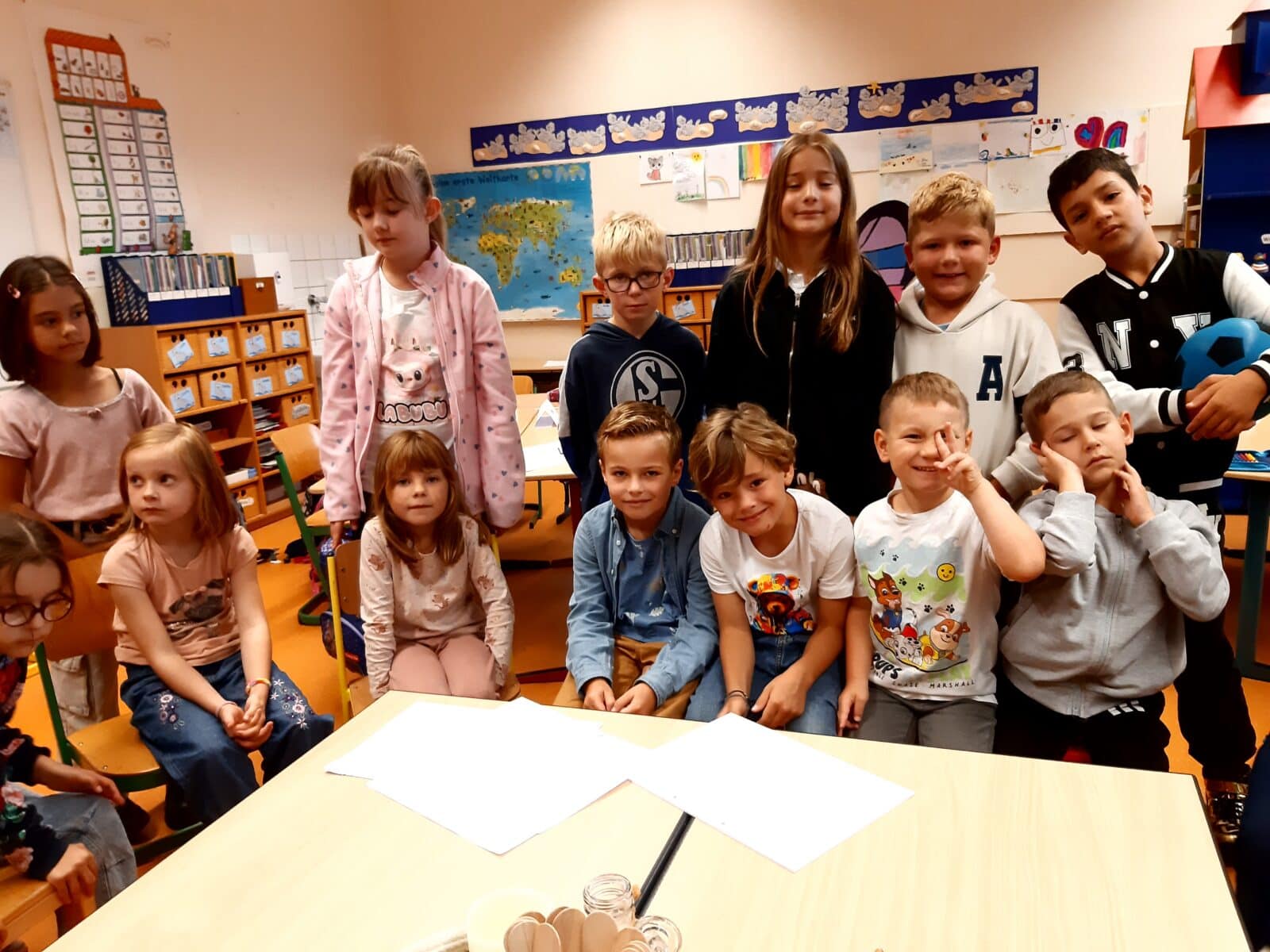 An unserem zweiten Schultag haben wir unsere Paten kennengelernt. Sie kamen kurz vor unserer ersten Pause zu uns in die Klasse, haben sich uns vorgestellt und uns eine Begrüßungskarte geschenkt. Darüber haben wir uns sehr gefreut! Noch schöner war es, dass sie uns anschließend in die Pause begleitet haben. Schön, dass es dort jemanden gibt, der uns zusätzlich zu den Aufsichten hilft, wenn wir Fragen haben.