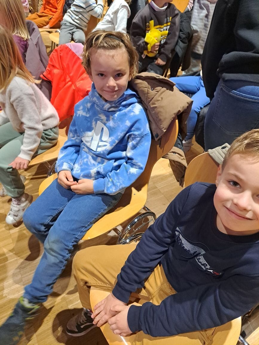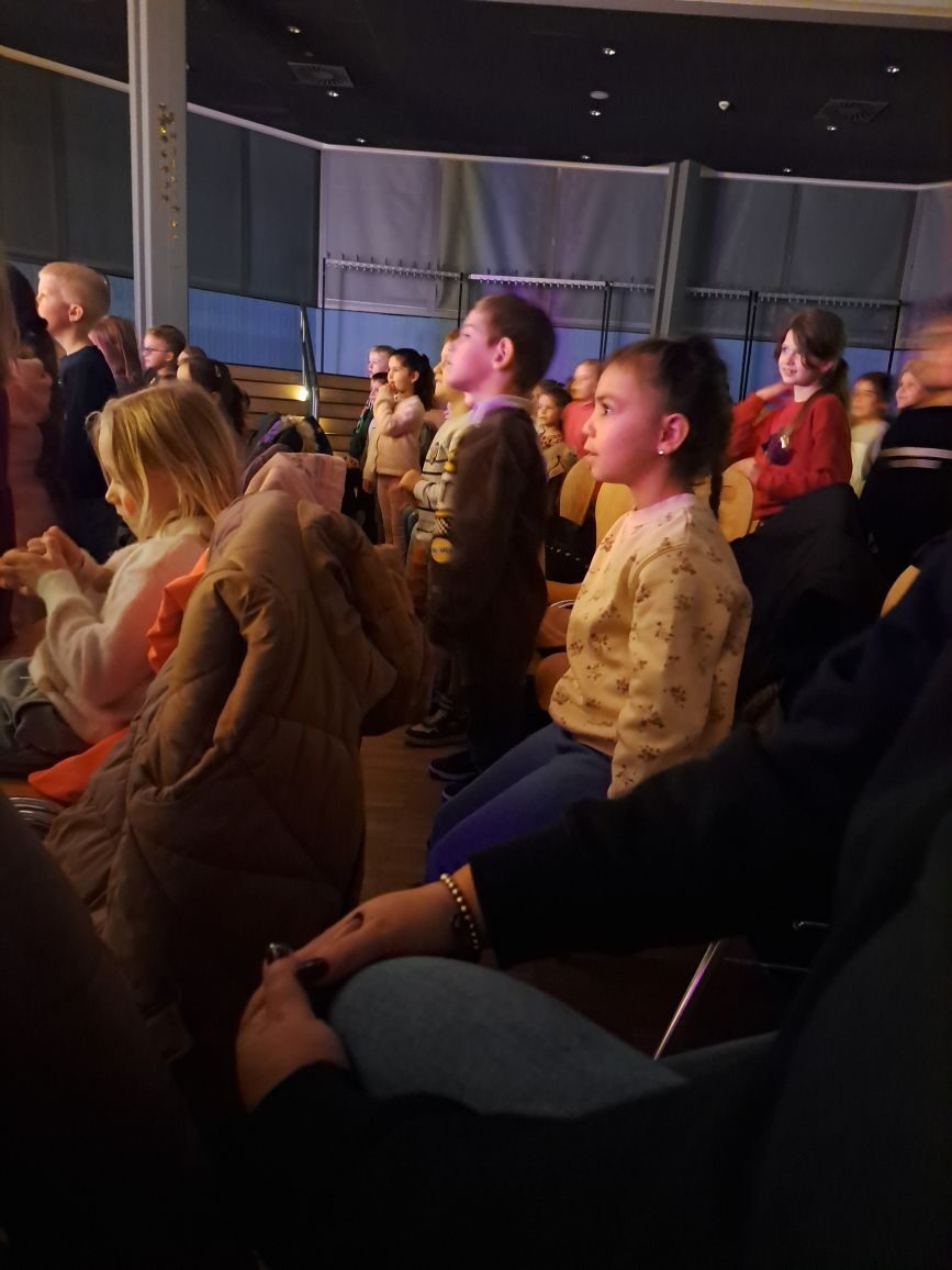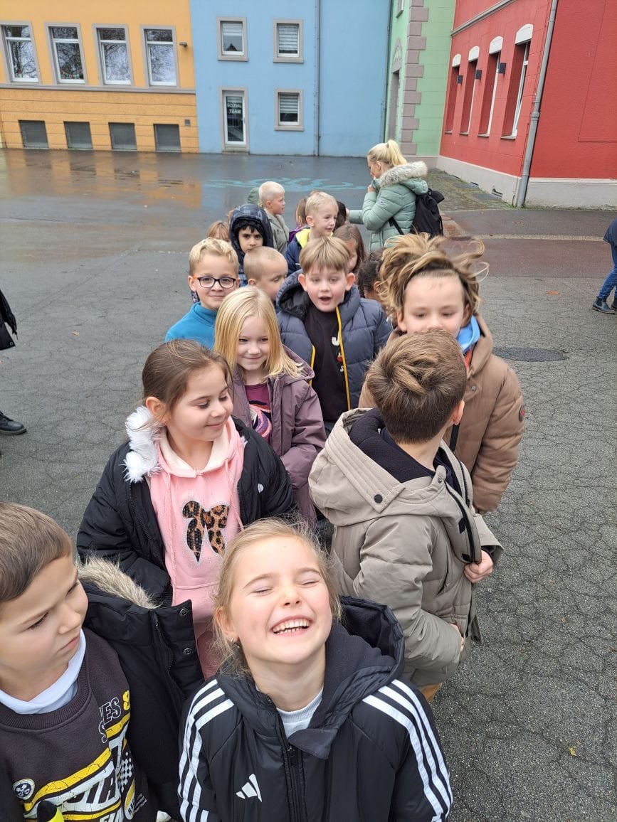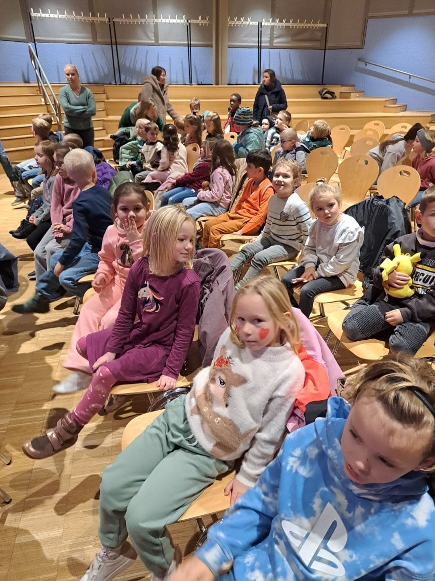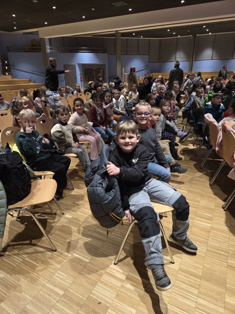 Am 18.11.25 waren wir im Theater. Ein Bus hat uns von der Schule abgeholt und zur Rosa Parks Schule gebracht. Dort durften wir das Verkehrstheater Till sehen. Jule hat in dem Stück ganz schön Glück gehabt, dass die Verkehrsbengel sie vor einem Unfall gerettet haben und ihr später erklärt haben, wie sie richtig über die Straße geht. Wir durften dabei tatkräftig durch Mitsingen und -rufen mithelfen. Das war klasse!