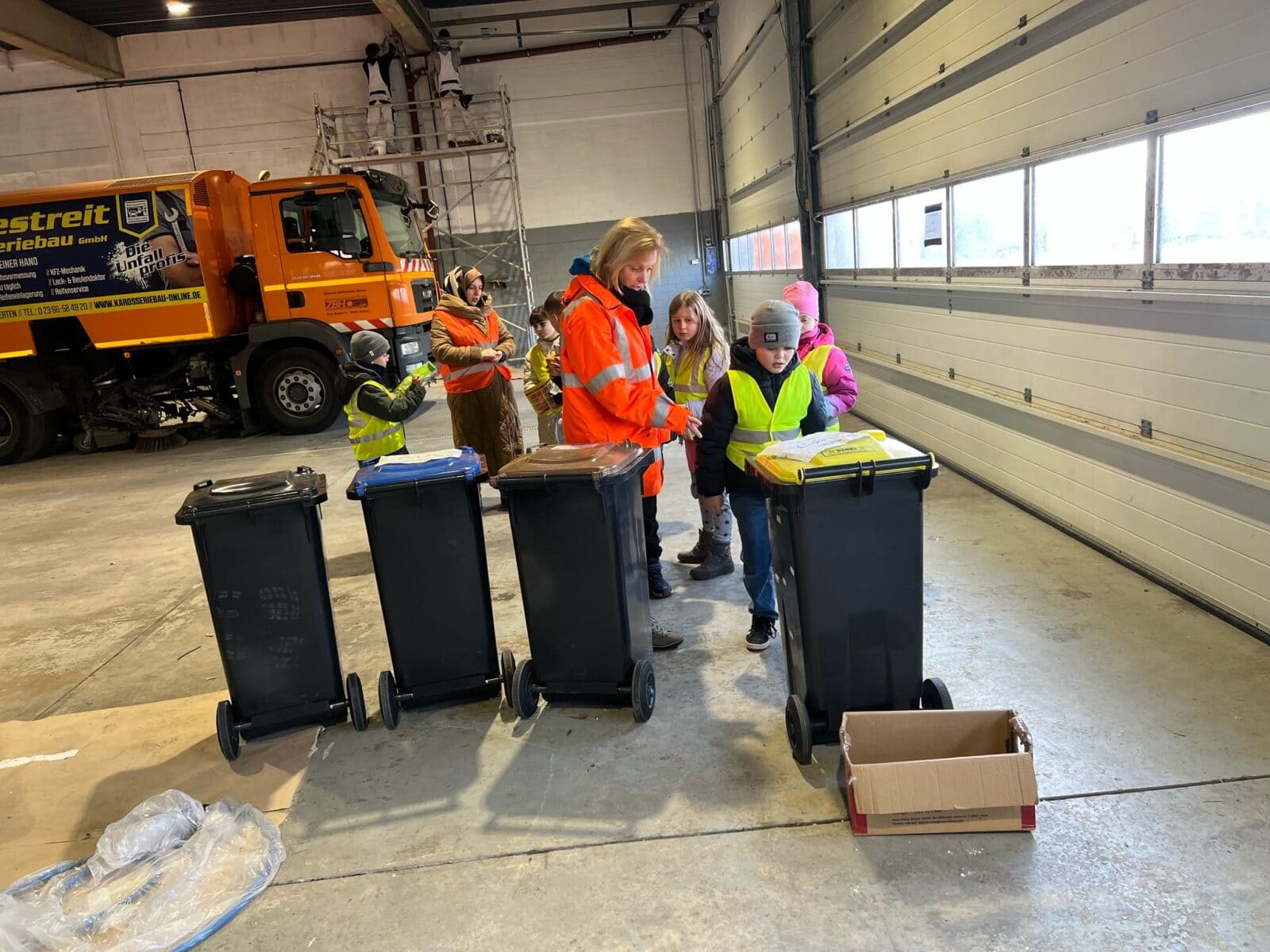 Im dritten Jahrgang machen unsere Kinder einen Ausflug zum Wertstoffhof (ZBH). Hier wird ihnen ein interessanter Einblick hinter die Kulissen geboten. Sie erkunden den Wertstoffhof, lernen die Mülltrennung und -entsorgung kennen, dürfen ins Salzlager gehen und besichtigen ein großes Müllfahrzeug. Abschließend haben sie noch die Möglichkeit, die Erde aus der Kompostkiste mit Lupen zu untersuchen.