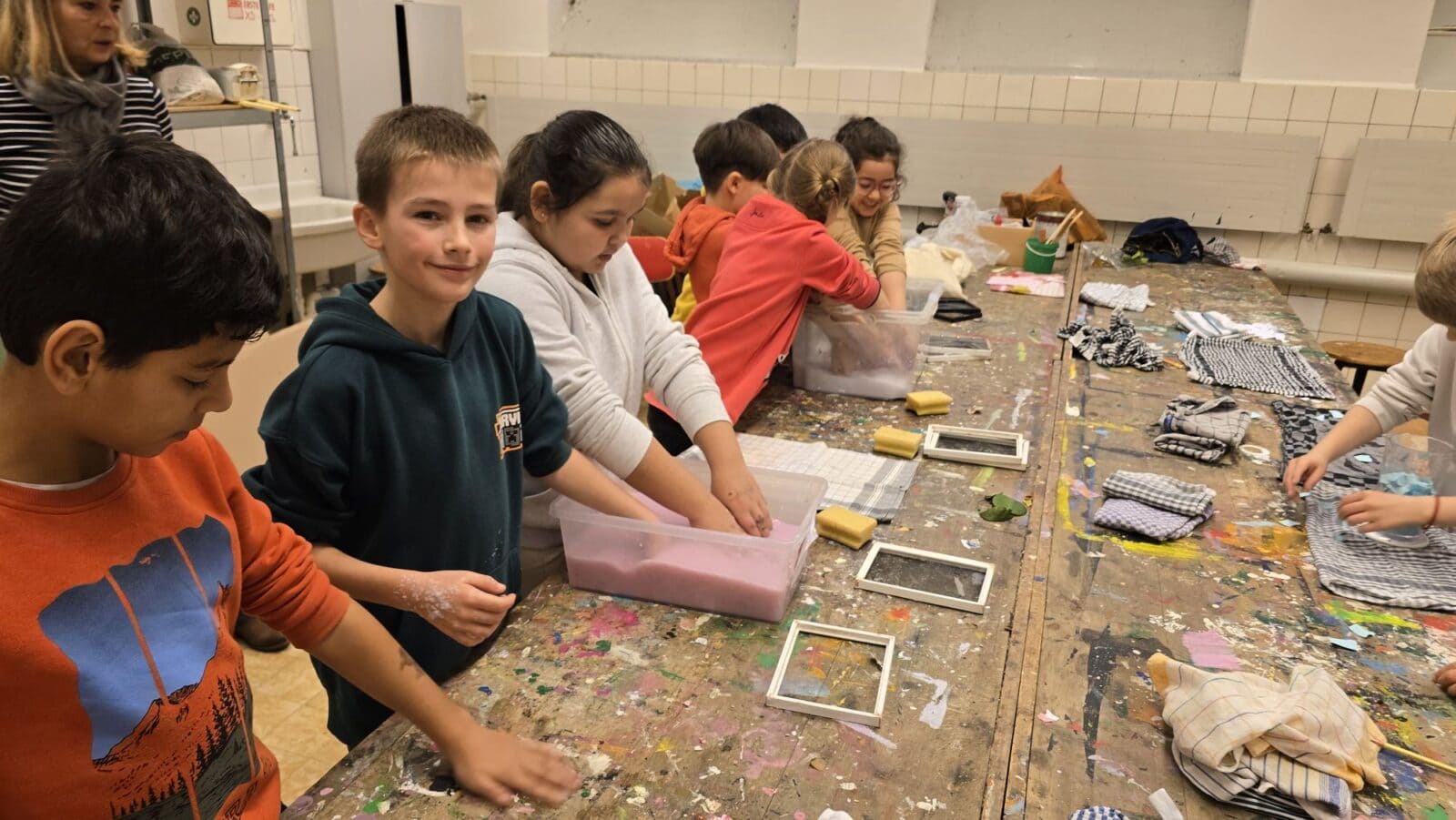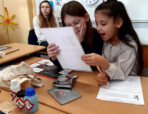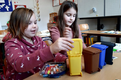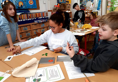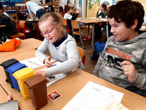 Frau Ruckriegel vom Zentralen Betriebshof Herten (ZBH) besucht Im Rahmen der nachhaltigen Entwicklung (BNE)  unsere Kinder auch im dritten Schuljahr. Dann hat sie einen speziellen Materialkoffer dabei und baut aus mehreren Stationen eine Abfallwerkstatt auf. Die Kinder arbeiten daran in Teams und lernen alles über Abfall, Abfalltrennung und -vermeidung. Hintergründe und Zusammenhänge werden dabei altersgerecht und interessant dargestellt. Bei einem weiteren Besuch dürfen die Kinder Papier schöpfen. So erfahren sie, wie aus altem Papier besonders tolles neues Papier entstehen und Abfall vermieden werden kann. Weitere Informationen hier