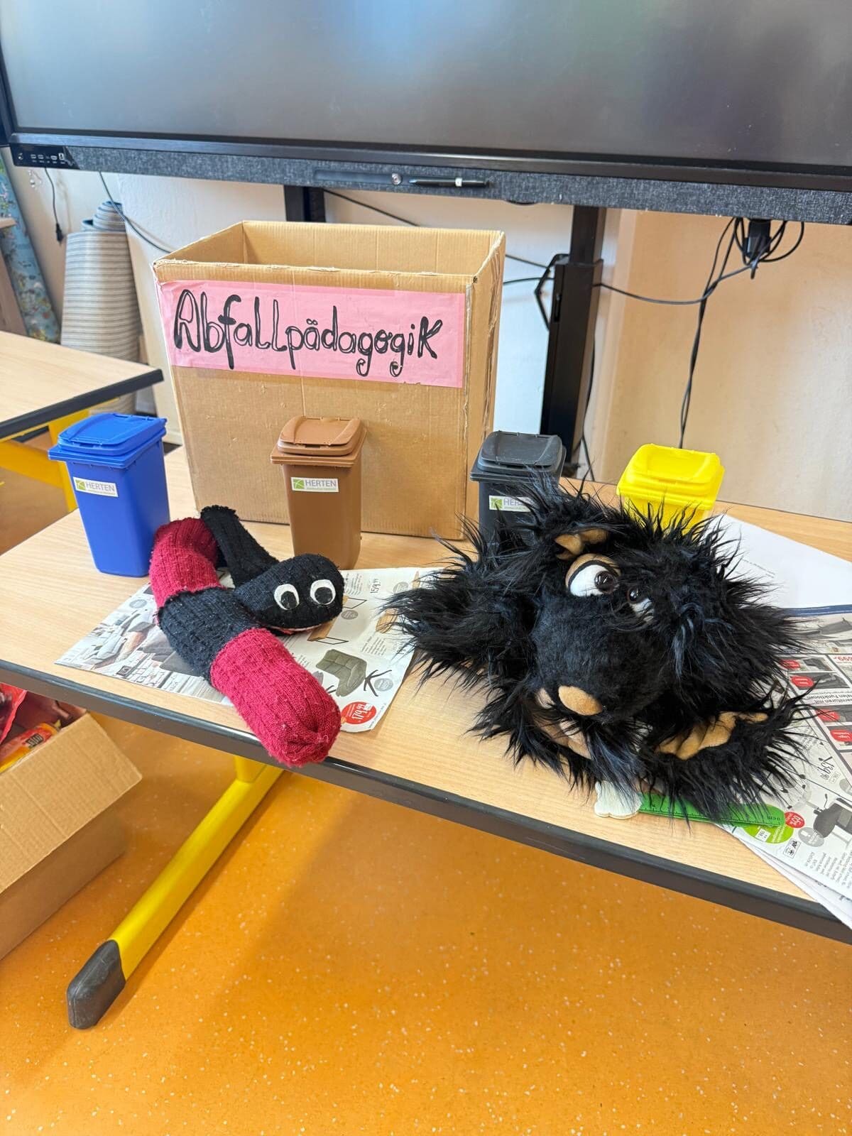 Im Rahmen der nachhaltigen Entwicklung (BNE) besucht Frau Ruckriegel vom Zentralen Betriebshof Herten (ZBH) unsere Kinder im ersten Schuljahr. Begleitet wird Sie dann von der Sockenpuppe Willy Wurm, mit dessen Hilfe die Mülltrennung in dem „Mini-Projekt Abfall“ erlernt wird. Es wird geübt wie man Abfälle unterscheidet und wie sie richtig entsorgt werden. Mit dem Abfallrap wird das Wissen zur Mülltrennung weiter vertieft und in den anschließenden Schulwochen angewendet und eingeübt. Weitere Informationen hier.