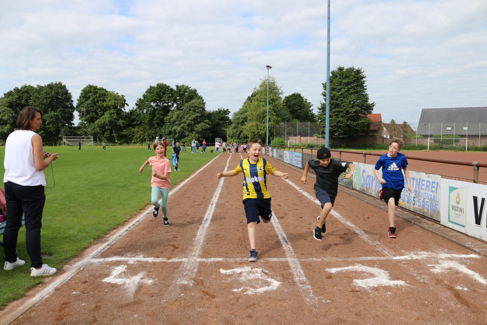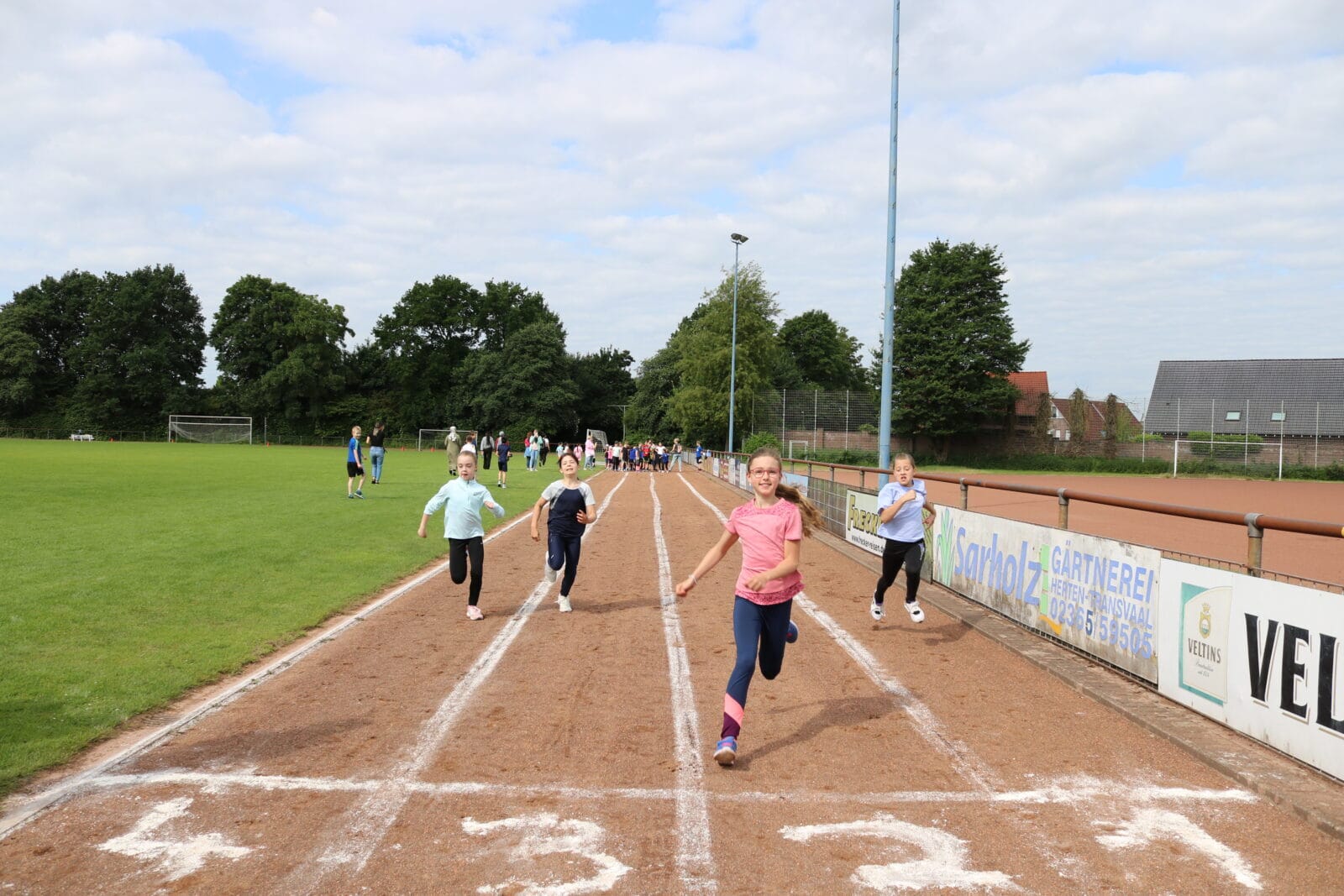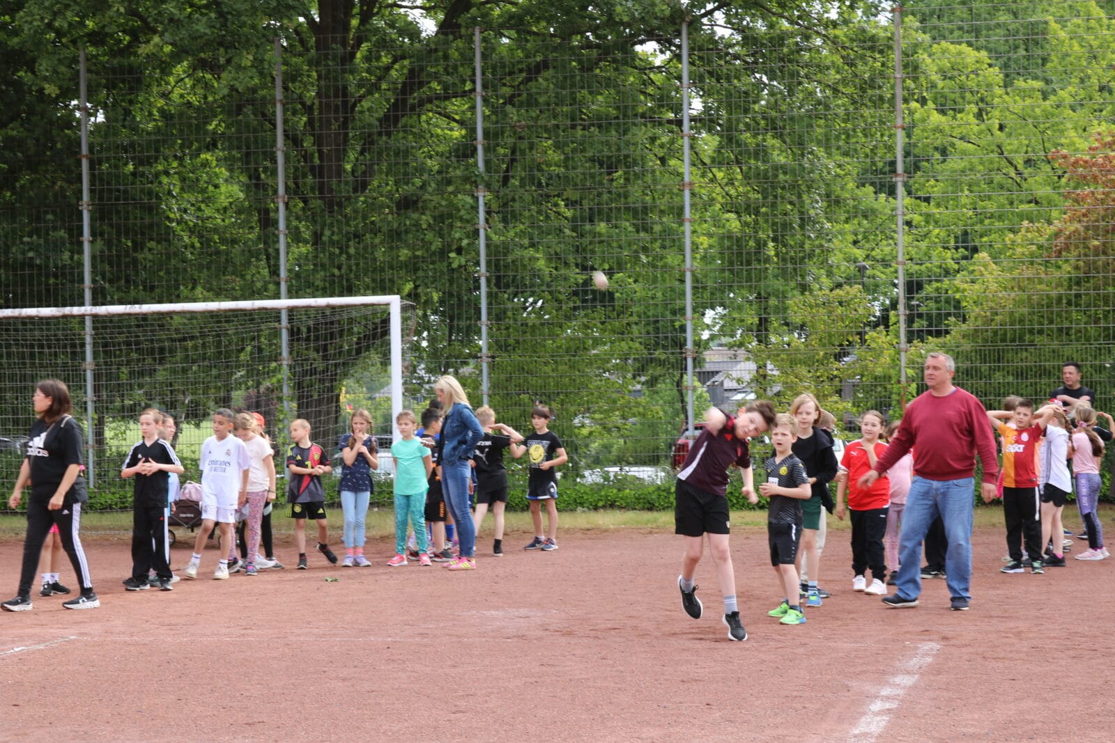 Bewegung, Spiel und Sport ist ein fester Bestandteil unseres Schulalltags, um die positiven Auswirkungen auf die Entwicklung der Kinder auszuschöpfen. Neben dem lehrplangerechten Sport- und Schwimmunterricht ergänzen wir unser Angebot durch Sportwettbewerbe (Sportfest, Tischtennis-, Basketball- und Fußballturniere), Sportaktionen (Sport- und Schwimmabzeichen, „AOK-Laufwunder„, „Skipping Hearts„, „Zu Fuß zur Schule„, …) und begrüßen regelmäßig Sportvereine (Basketball, Tischtennis und Tennis) als Gäste. In den Pausen stehen den Kindern, neben den Spielgeräten auf dem Schulhof, Spielekisten zur Verfügung, die zu Bewegung einladen. Auch die Pausendisco, organisiert und durchgeführt durch die Elternschaft, kann den Spaß an der Bewegung fördern.